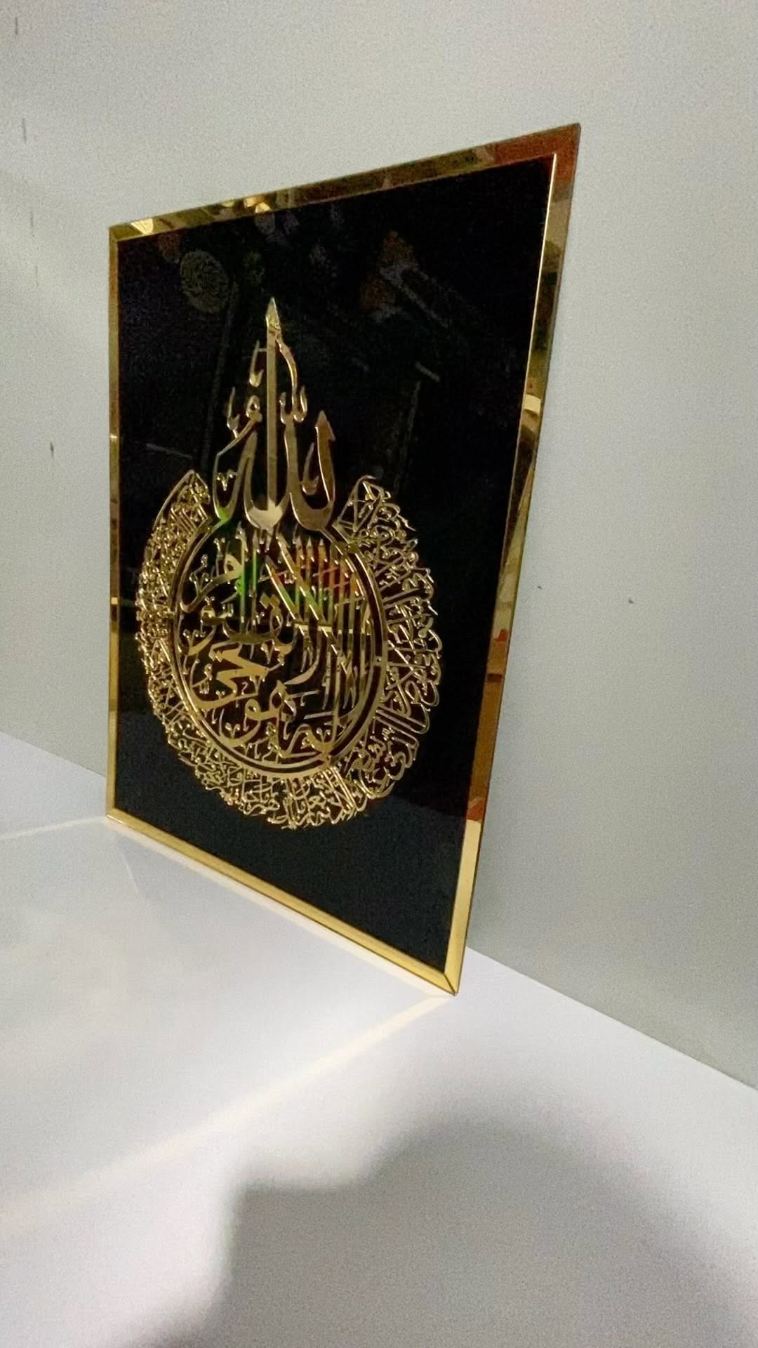 Ayat-ul-kursi Bring barakah into your home with this beautifully designed in Ayat-ul-Kursi, crafted with high-quality golden and black for a luxurious and modern finish. More than just a wall piece — it’s a daily reminder of Allah’s protection and mercy.